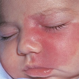 Yüzde koyu kırmızı leke ile belli olan epilepsi tablosu.