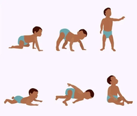 - 4-5 ay Tam dönme (sırt üstünden yüzüstüne ve geri) ile erişme (gördüğü bir nesneyi uzanıp alma